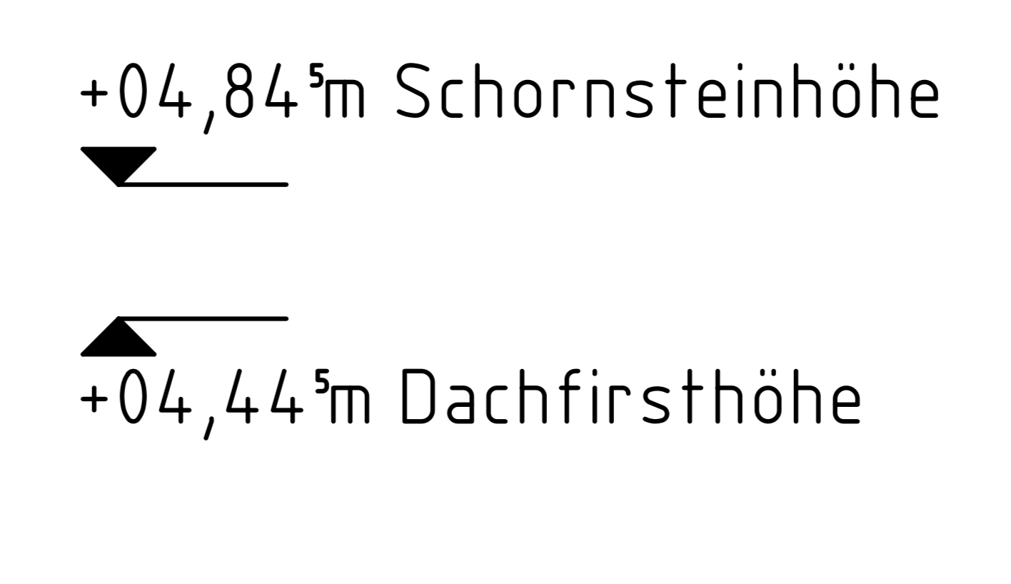 - Beschriftungsformat gemäß DIN 1356 (in Meter, aufrunden, hochstellen der dritten Nachkommastelle usw.)