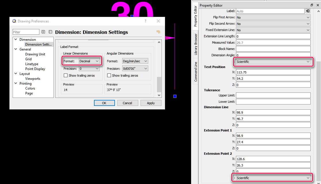 Correct - “Scale” is missing and two incomplete fields for “Linear Format” are now listed. The order makes no sense to me and it also doesn’t represent the correct settings below Drawing Preferences. Set is Decimal and the PE tells as it is Scientific. e_confused