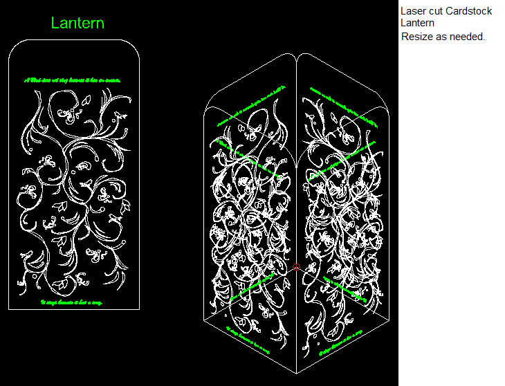 I thought I would share this laser cut file for a card stock lantern, quite simply just cut out the four sides, glue together and job done. I guess for the very skilled you could use a craft knife (be careful). ![]()