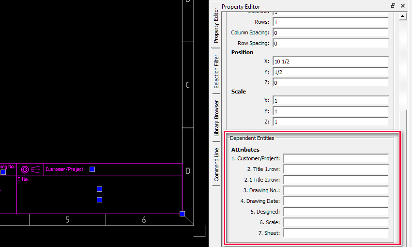I single-click the “Title” block (the one holding the drawing name other references at the bottom RH corner)