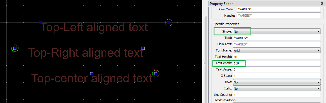 Text entities normally have a single insertion position, see the ‘Text Position’ properties in XY.