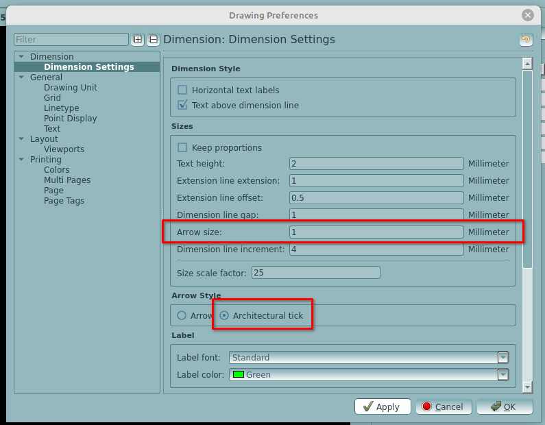 I referred to the Drawing Preferences settings