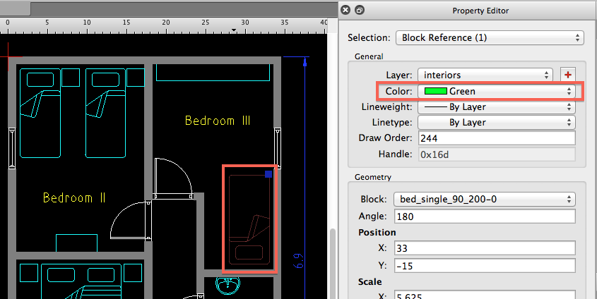 Keeping in mind all of the above, it is also possible to assign individual colors to entities. The easiest way to do so is by assigning a color using the property editor as shown below. Select the entities you want to change, make sure the property editor is shown (View - Property Editor) and change the color in the property editor.