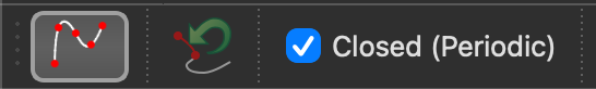 - Check the option Closed (Periodic) in the options tool bar at the top to create a closed, or uncheck the option to create an open spline: