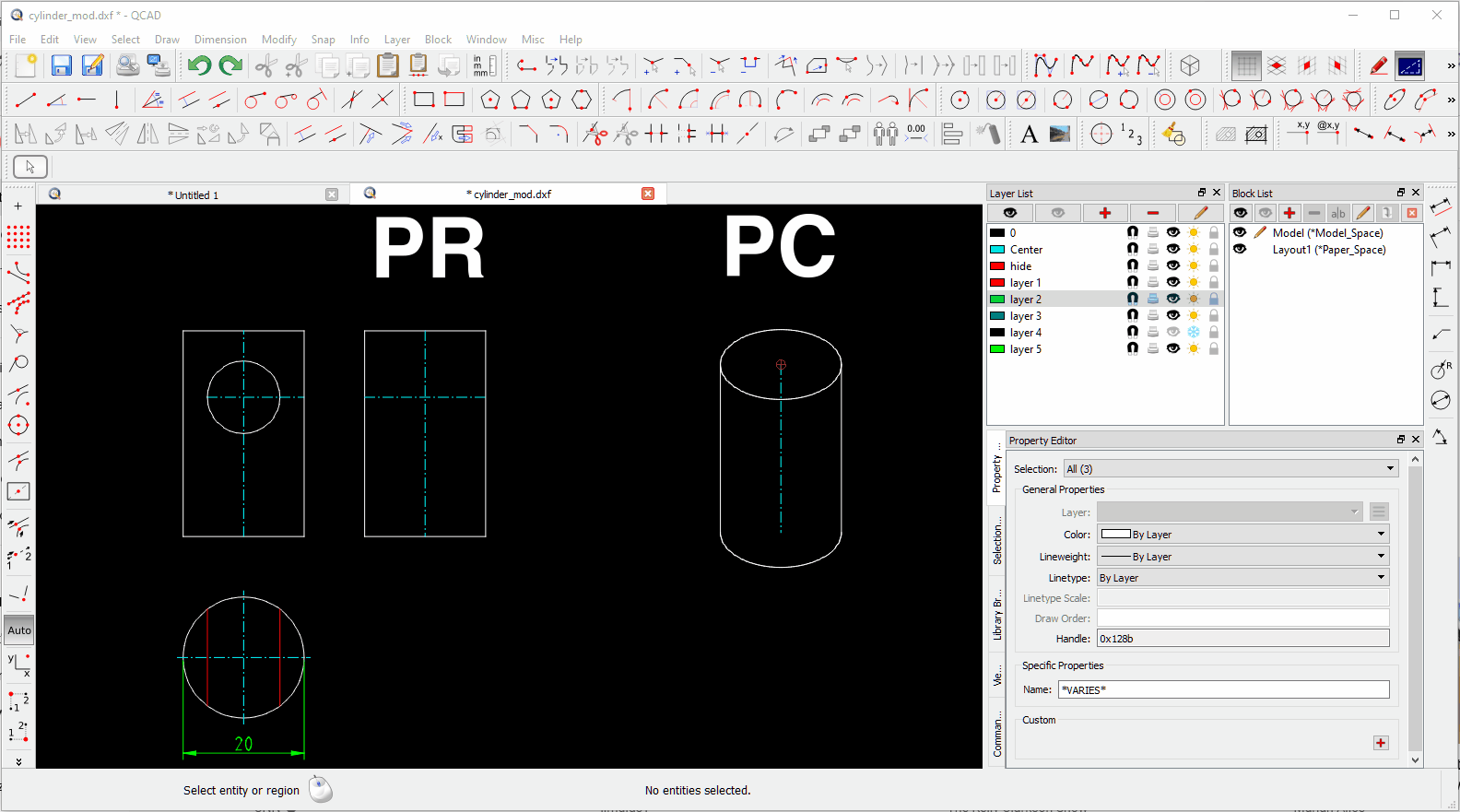 I have my three orthogonal views done and was able to do a basic isometric view but i did not use the cylinder tool