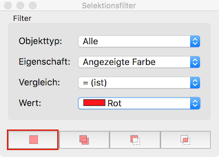Allenfalls hilft auch der Selektionsfilter (Ansicht > Selektionsfilter) weiter, z.B. zum Selektieren aller Objekte mit einer bestimmten Farbe: