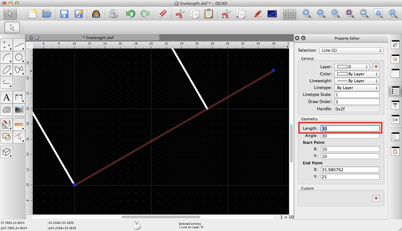 There are also other ways to specify a length of a line, for example by trimming, trimming by a given amount, entering the end coordinates relative to the start point, etc.
