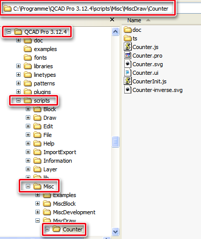 Lade Dir bitte die counter.zip von der genannten Seite herunter und extrahiere diese. Weiter auf der Seite findest Du zudem modifizierte Dateien die es auszutauschen gilt um den aktuellen Stand zu haben. Nun hast Du einen Ordner (counter) der einfach unterhalb des Verzeichnisses “MiskDraw” von QCAD kopiert werden muss und nach einem Neustart von QCAD ist das Script verfügbar.