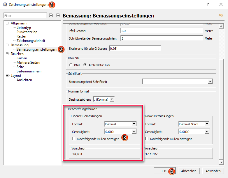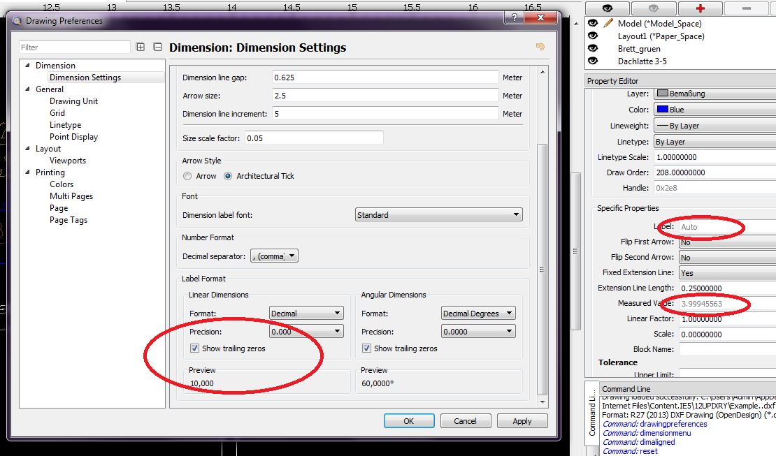 Leider finde ich keine Option, nur diese Maßlinie auf zwei Nachkommastellen zu ändern.