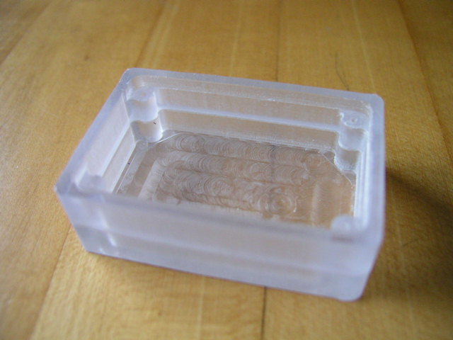 I am lost, thought it may have been generated in QCad/Cam, but I doubt it. I have a Gremlin in my system that pops up and disappears. I did the full version of that G-code and had no issues and worked perfectly. When I first executed the G-code the spindle went up beyond its limit, I stopped it and started over and it worked with fine. It is like the system get confused and goes rouge. But I got the box done and fits good. It is only an exercise doing pocketing with multi layers, with inside profiling. I used Chinese/ single flute end mills got from EBay, for the acrylic. This is my results. So I guess I will contact Mach3 people to see if they have any ideas!