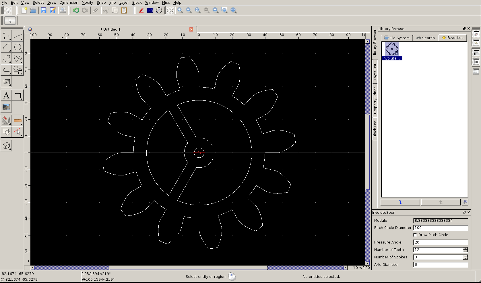 I created a Gears Folder which contains the InvoluteSpur.js and InvoluteSpur.ui files, restarted QCad and updated the Library. I can now see the InvoluteSpur entry but how to start the script?