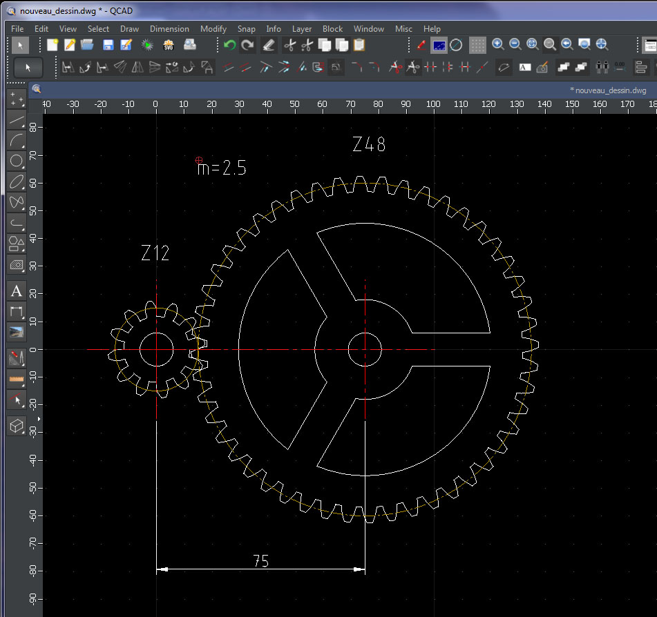 Or we define the module and get a certain diameter of the pitch circle for a number of teeth …