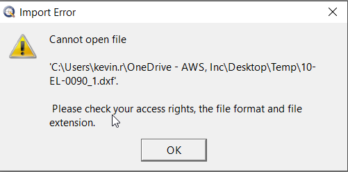 I get the error when i try to open this file that was sent to me that was created in AutoCAD. I had them send it to me as a .dwg and .dxf and neither would work.