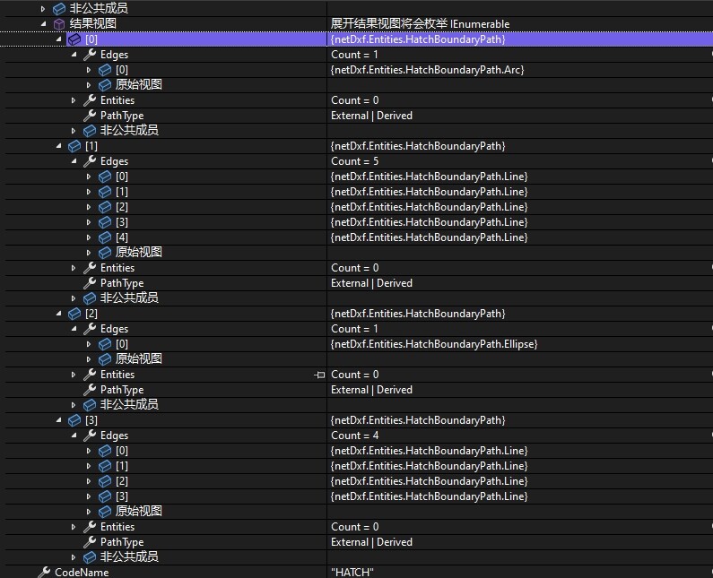 Hello everyone, the attachment is a DXF test file I designed, which contains a hatch area. I am now using the winform netdxf library to parse this DXF file. The obtained hatch entity contains four netDxf.Entities.HatchBoundaryPath objects, but I don’t know this. Which two of the four objects need to be filled and which two do not need to be filled? Is there any flag or method to distinguish them? I need to display the filled area in winform program