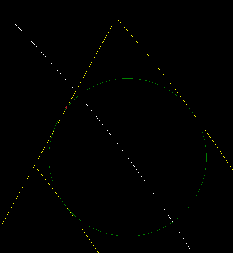 I want to draw a circle which is tangental to all three segments, the two arcs and the straight line.