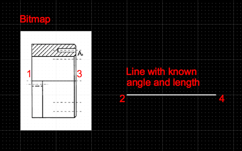 When inserting a bitmap into a CAD system (for example for tracing or vectorization), the scale (and often also the angle) of the bitmap have to be adjusted accordingly. There are several ways to achieve this in QCAD.