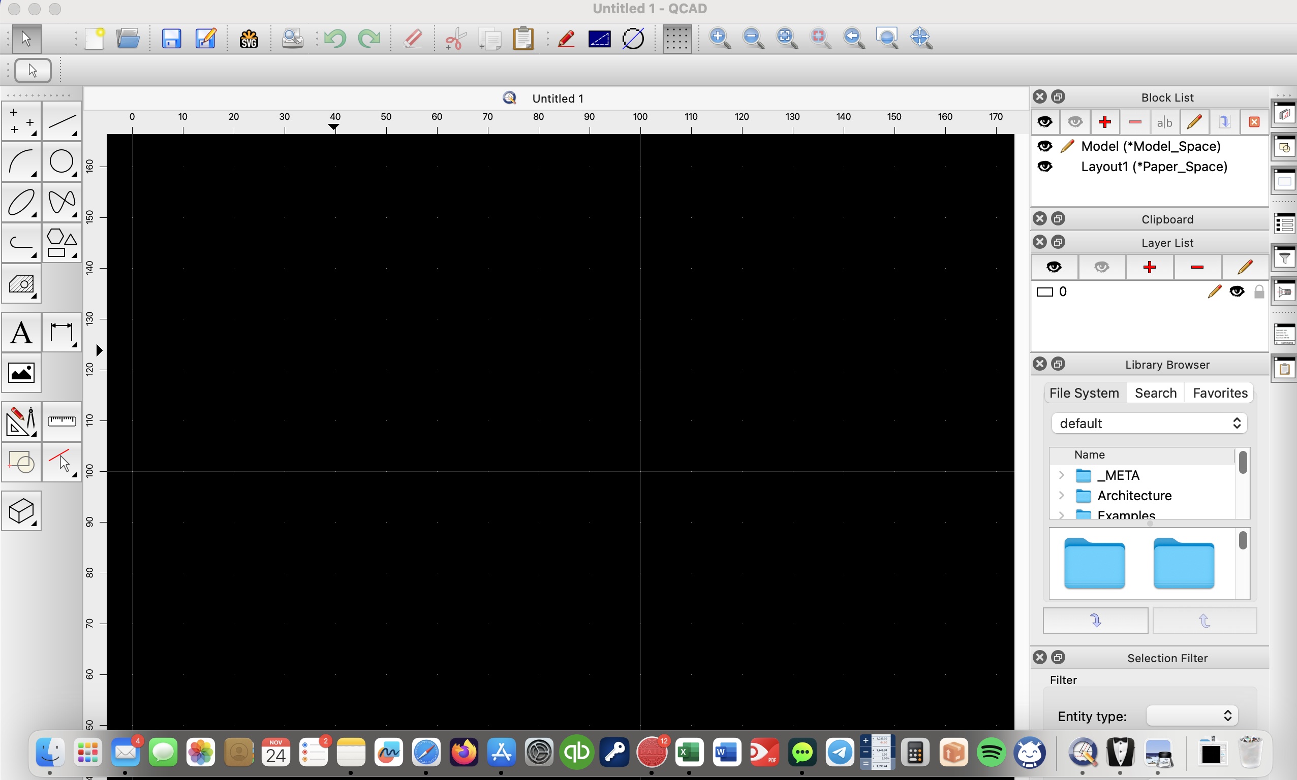 I hope this message finds you well. As a new user to QCAD, I am currently facing an issue with the latest QCAD version (qcad-3.28.2.4-trial-macos-11-13-qt6-arm64) on my MacBook running macOS Sonoma 14.1.1. (Apple Silicon M1 Mac)
