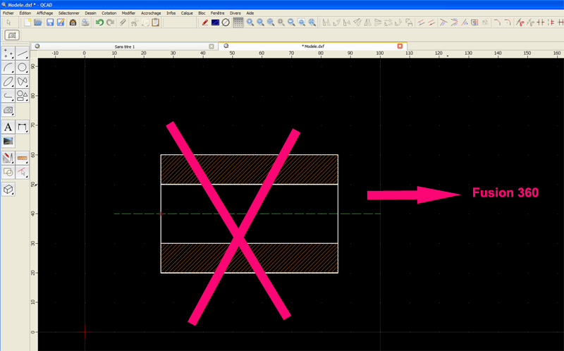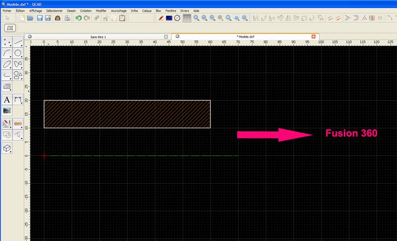 A l’ouverture de QCAD le zero absolu est situé en bas à gauche de l’écran.