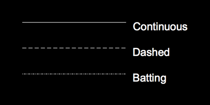 All line types are displayed with dashes and spacings in drawing units. A 2mm dash is shown as 2mm in drawing units. Zooming in makes dashes and spaces appear longer on screen.