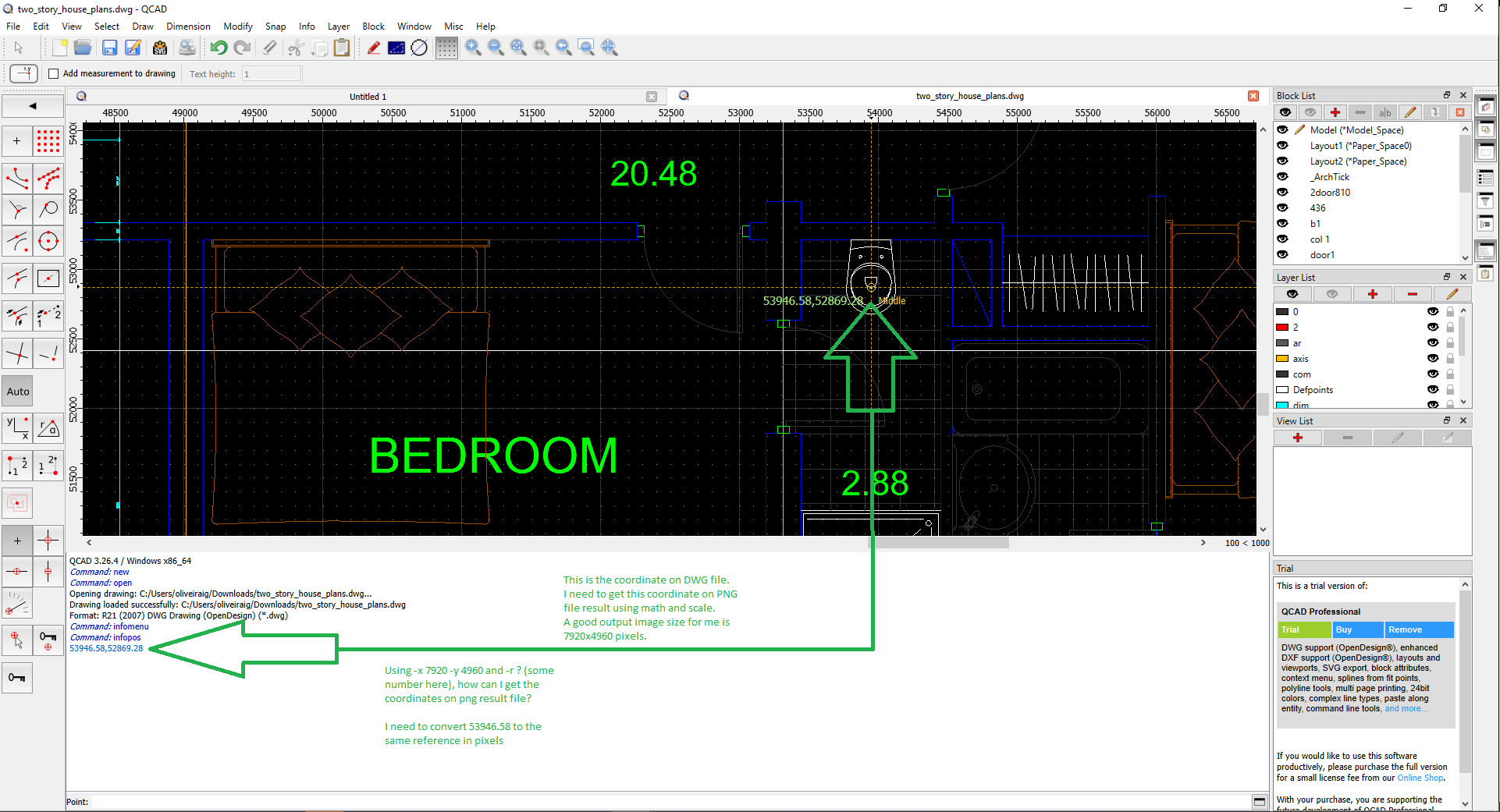 Like, I multiply the DWG coordinates and find the same place on PNG in pixels.