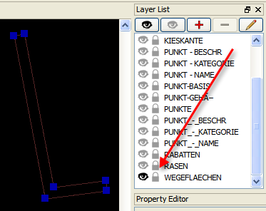 I have no problems to select the “WEGEFLAECHEN” contour! Maybe you have accidentally locked the Layer - please check the status of the Padlock symbol (black = locked / grey = unlocked).
