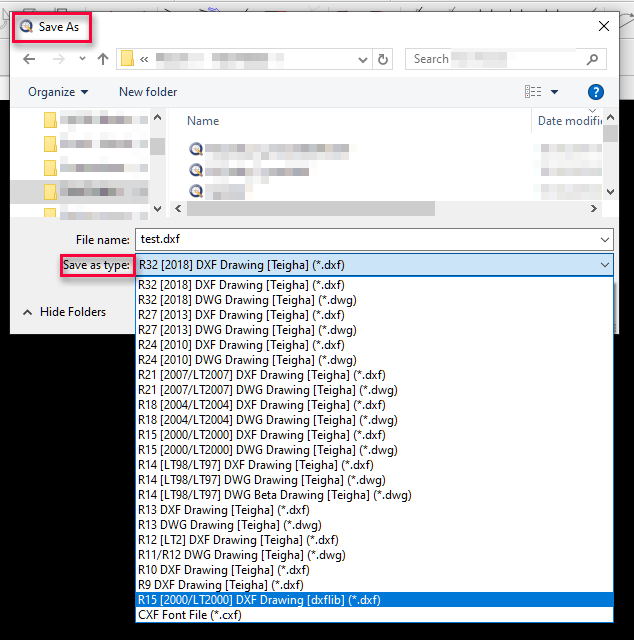 was slightly embarrassing.. So now my files all save as R15 [2000LT2000] DXF Drawing [Teigha] (.dxf) by default