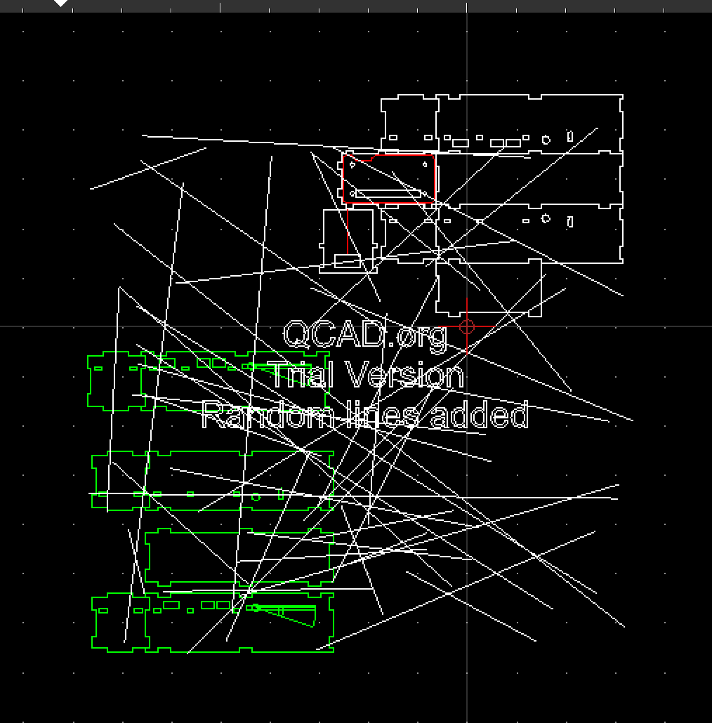 There are four places where I see that random lines have been added because QCAD is in trial mode.