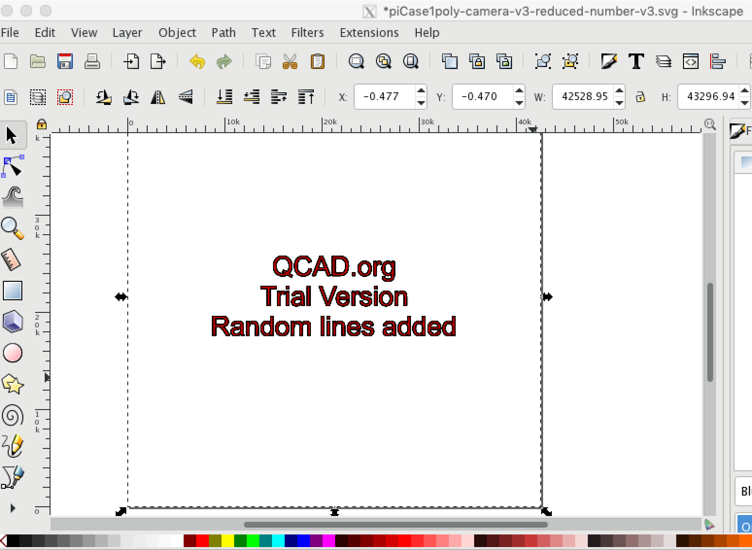 But I have noticed that the SVG export in the trial is so crippled that I cannot test the output SVG files. It says it adds random lines, and I can see them in my laser cutting software. However, I cannot even view the SVG file in inkscape with the added lines.