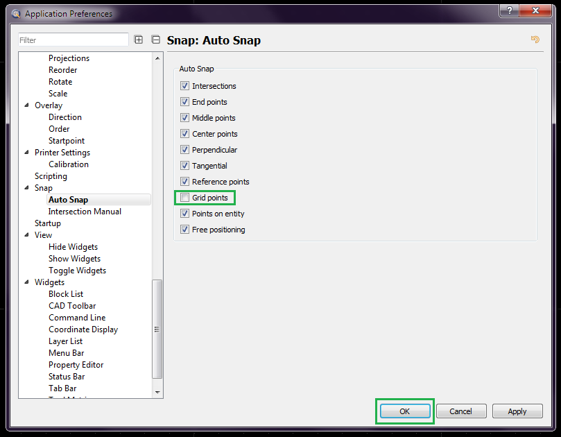 At the same time you can also configure the preferences for other auto snap options.