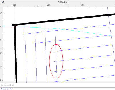 I’m having a strange problem where trimming a line leaves a tail beyond the limiting entity. In the attached picture, the blue lines were created using “parallel with distance” from the thick black lines. When I try to trim the ~horiz line to the ~vert it leaves a little overshot tail.