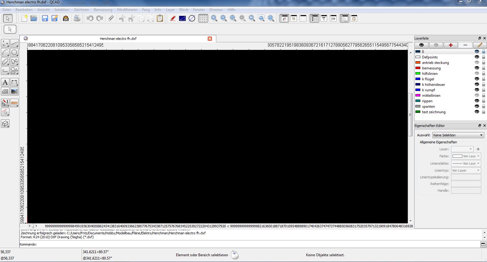 Ich arbeite seit Tagen an einem Projekt und unterbreche hie und da die Arbeit. Beim Neustart konnte die Datei geladen werden, jedoch erscheinen am Rande nur noch Zahlenwerte und die Zeichnung wird nicht mehr angezeigt; siehe Abbildung.